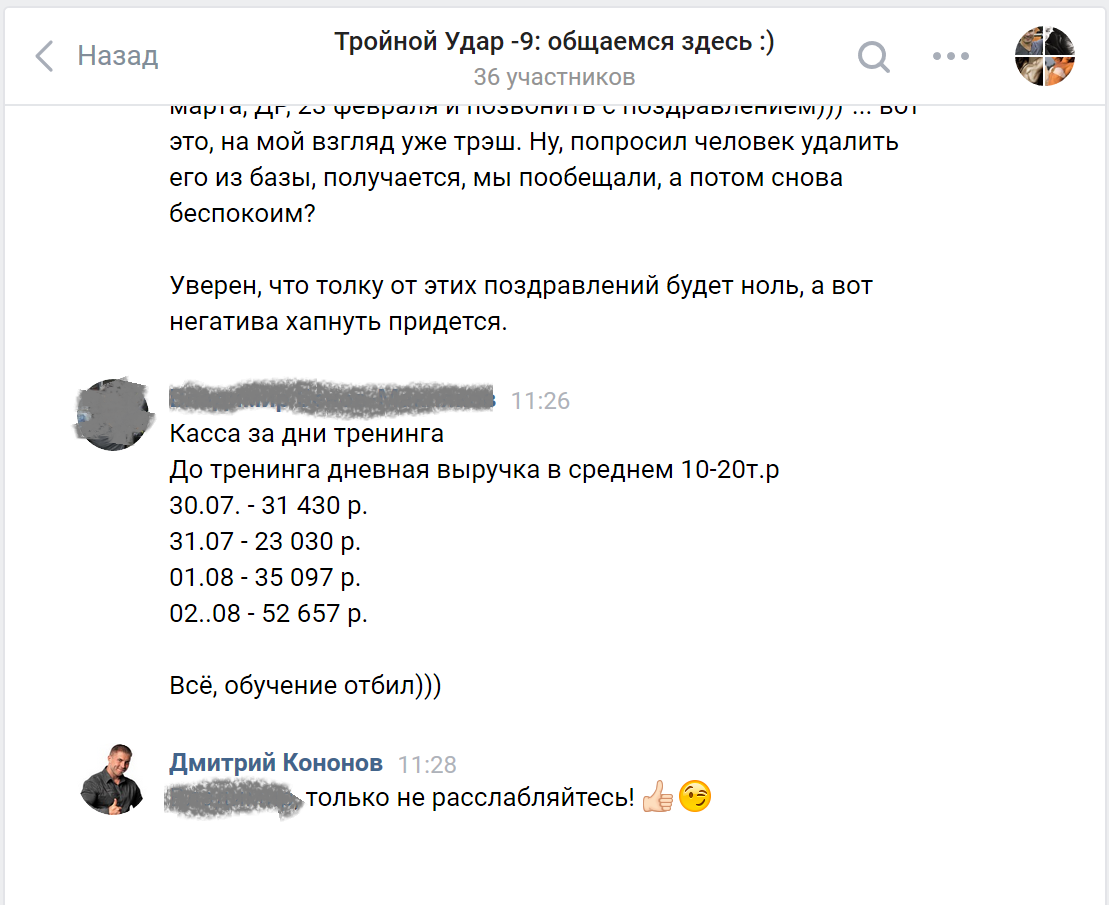 Общение и обратная связь в закрытом чате участников в Телеграм