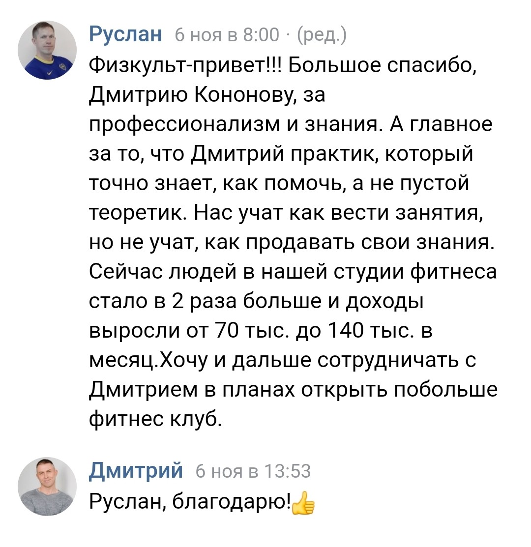 •БОНУСНАЯ ТЕМА ОТ ДМИТРИЯ КОНОНОВА: Личный Бренд Руководителя фитнес-клуба в соцсетях: упаковка, контент
